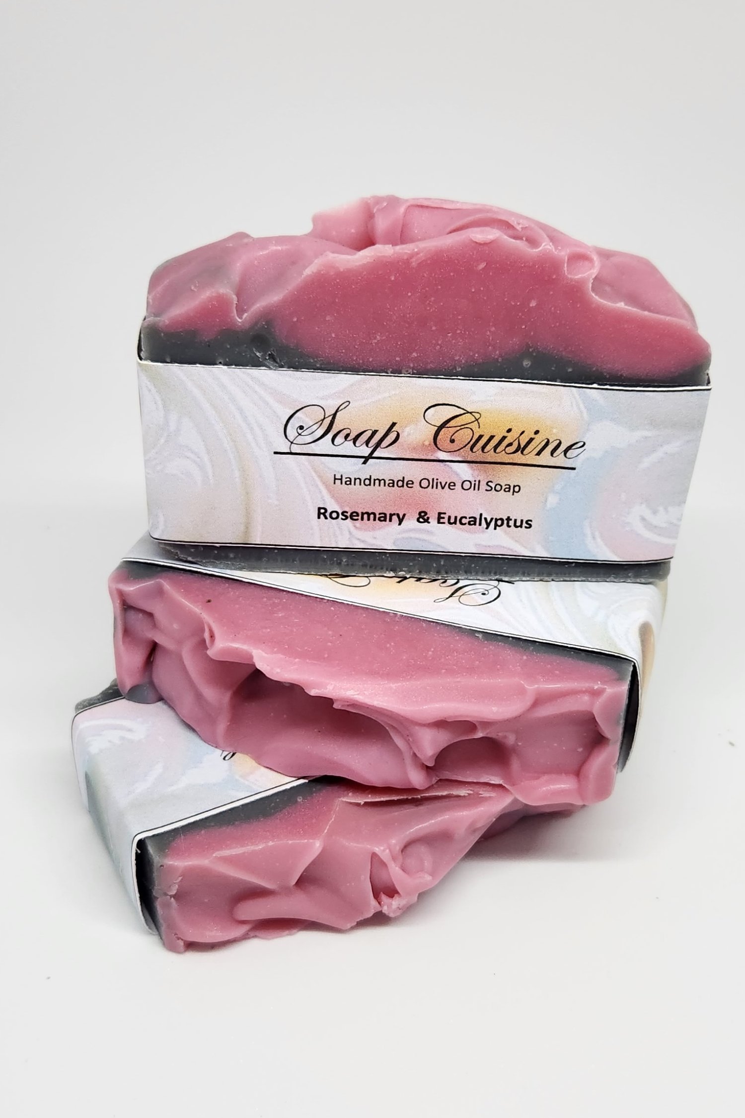 Treat your skin to this beautiful Olive oil soap coloured with Activated Charcoal and scented with Rosemary and Eucalyptus. Activated charcoal absorbs oil from the skin (pores) and will leave your skin fresh and balanced. The Eucalyptus and Rosemary with their antiseptic properties will detoxify and leave your skin soothed and refreshed.